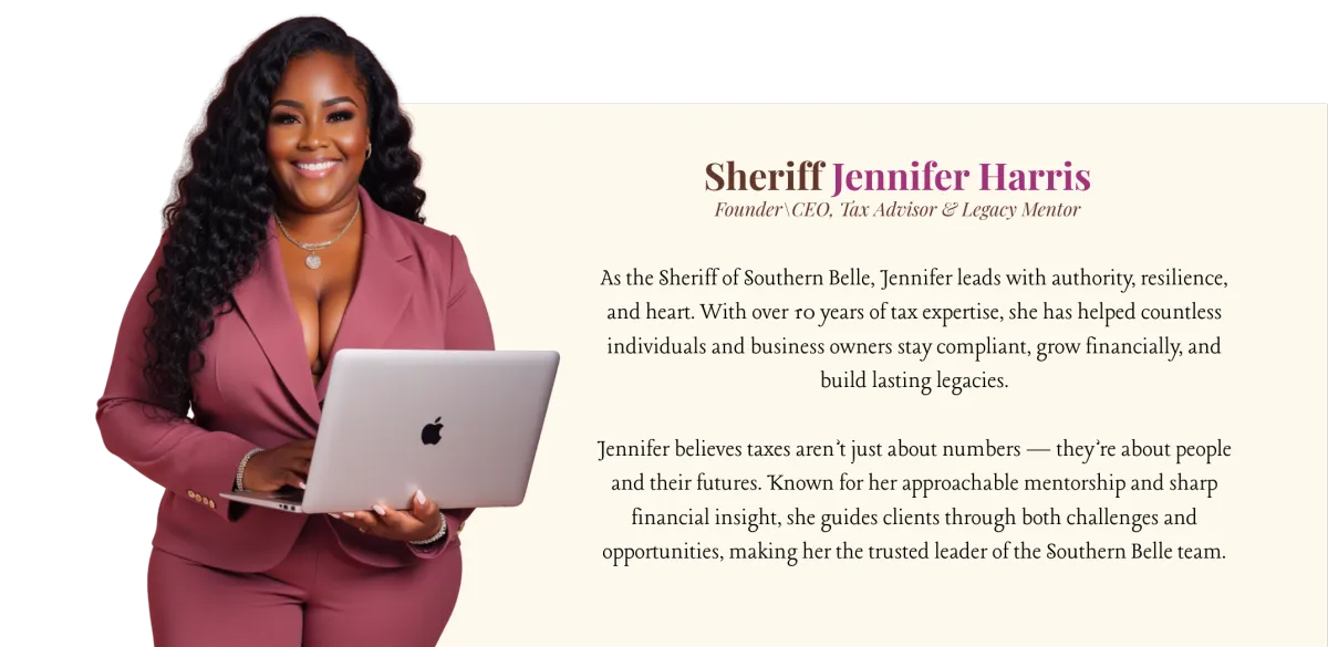 At Southern Belle Tax Solutions, we believe wealth is more than numbers on a form — it’s about stability, growth, and legacy. For years, we’ve served individuals and businesses with professionalism and care. After facing challenges and coming back stronger, we’re entering a new era: blending trusted tax expertise with mentorship and modern tools, all delivered with the warmth of true Southern hospitality.